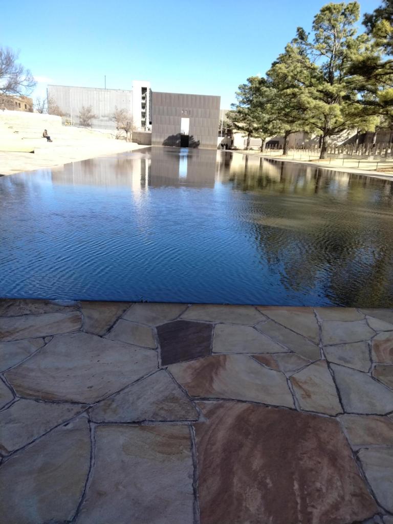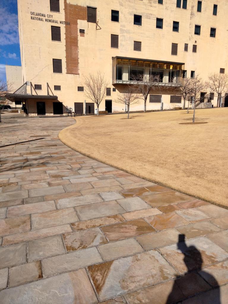 It was a sunny and reasonably warm day, compared to what I’m used to when we parked her Sonata across the street from the National Memorial in the post office’s parking lot. The first thing we noticed were handprints done in plaster done from children at a grade school in Texas not long after the bombing. Off to the distance was the Survivor Tree. We then went inside. We walked onto an elevator that took us down and then we walked into a replica of a meeting that occurred across the street from the Morrow Federal Building concerning property disputes. The clock on the wall showed 9 o’clock.