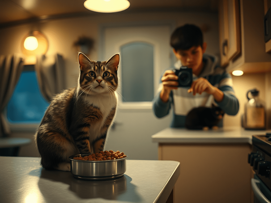 I jumped back over the fence and sneak in like I do to Master. He always appears bewildered when I sneak in and he’s still calling for me as if he is completely oblivious of my fleet paws pouncing and bounding inside unnoticed. I do just that. It helps that it’s dark out and he appears more frustrated than normal. Once again my stealth has the human caught flat footed as I spy the food dish sitting on the countertop. I leap gracefully onto the counter and proceed to eat the kibbles in a ravenous manner. I didn’t realized how hungry I was.